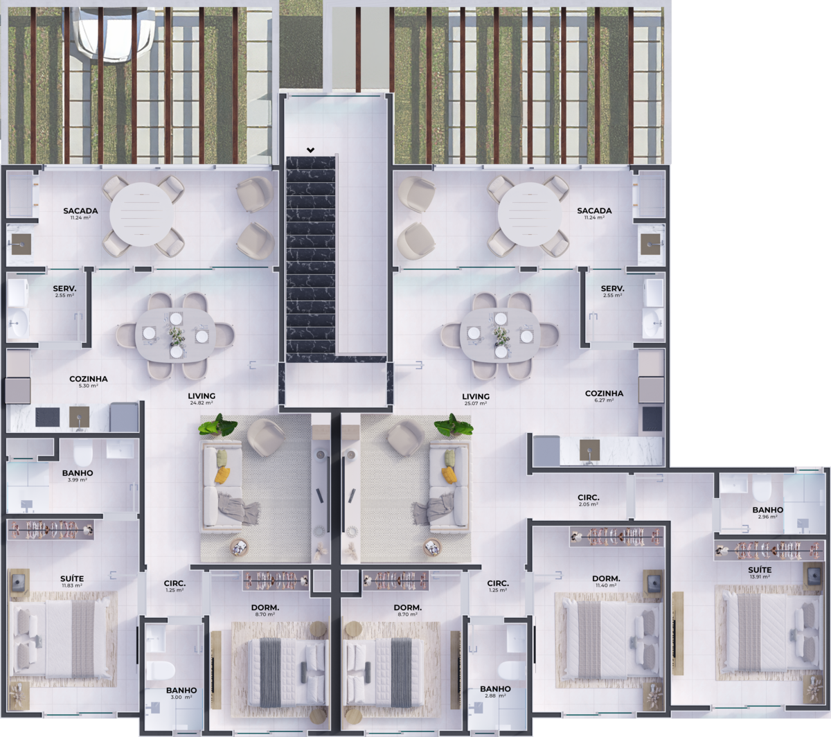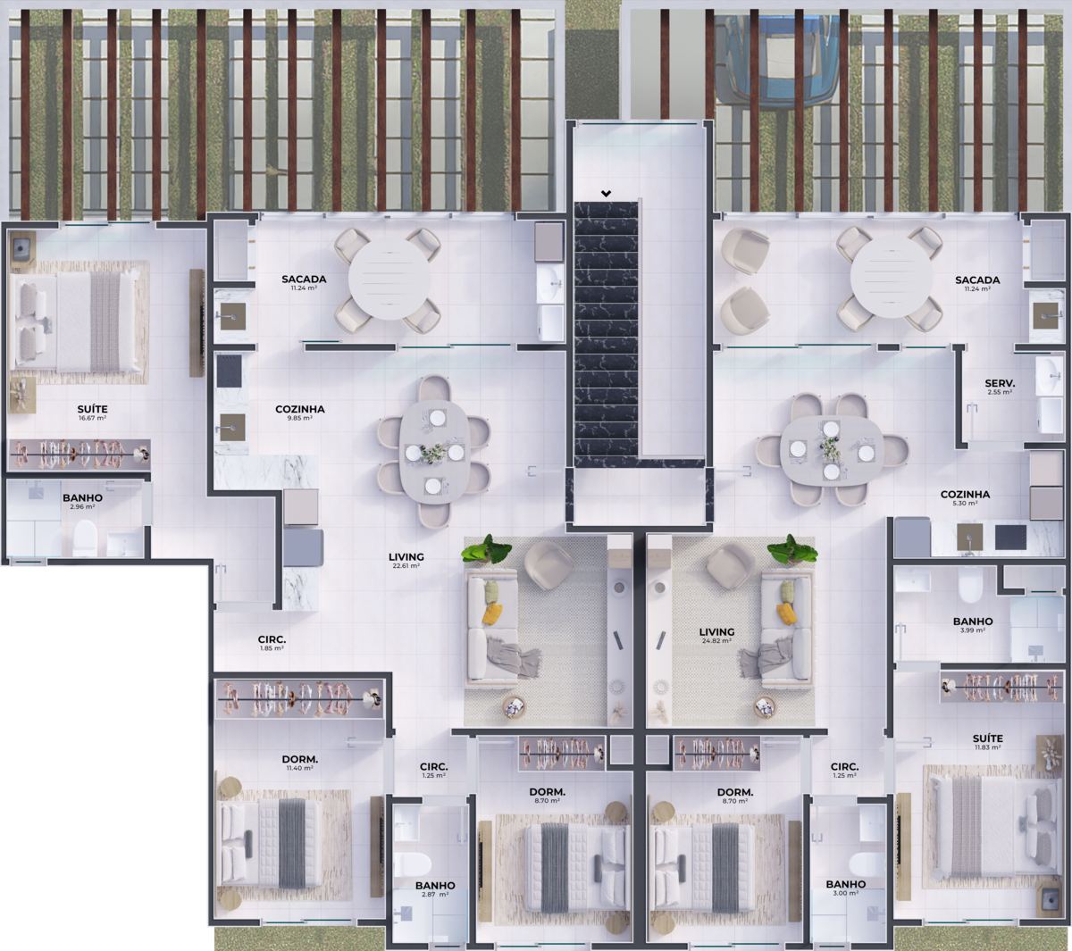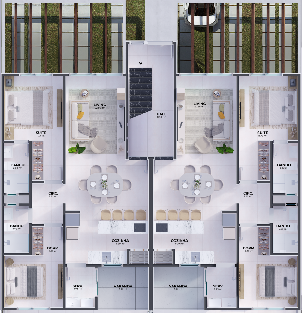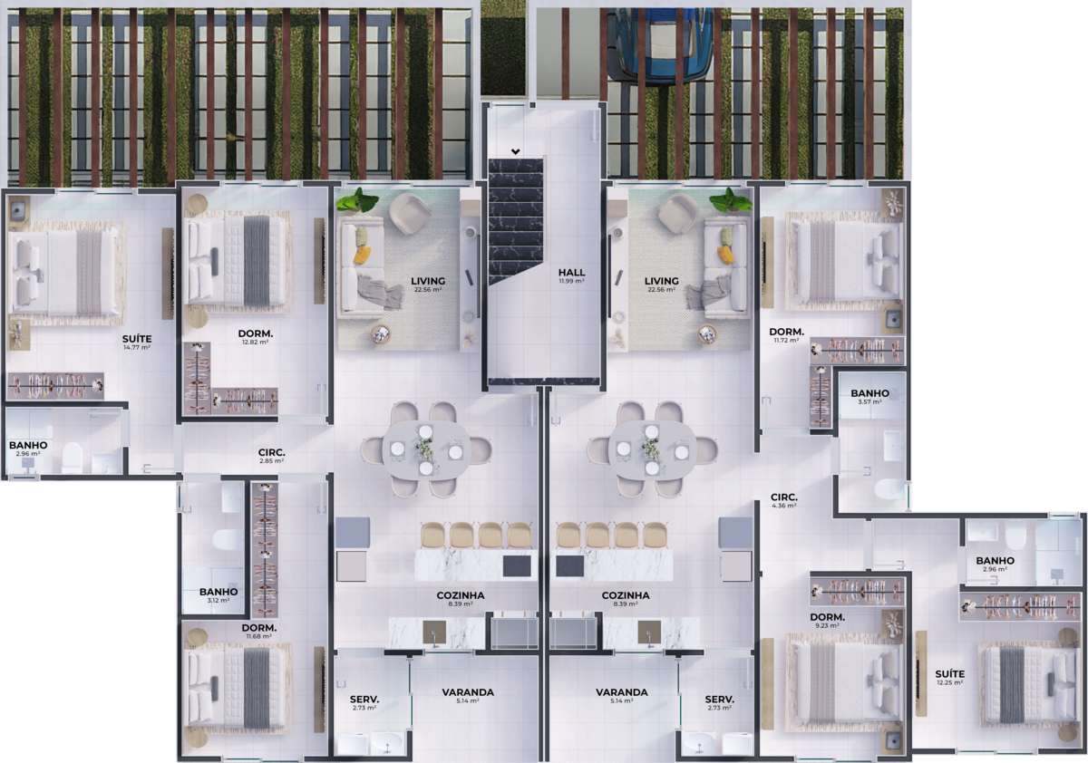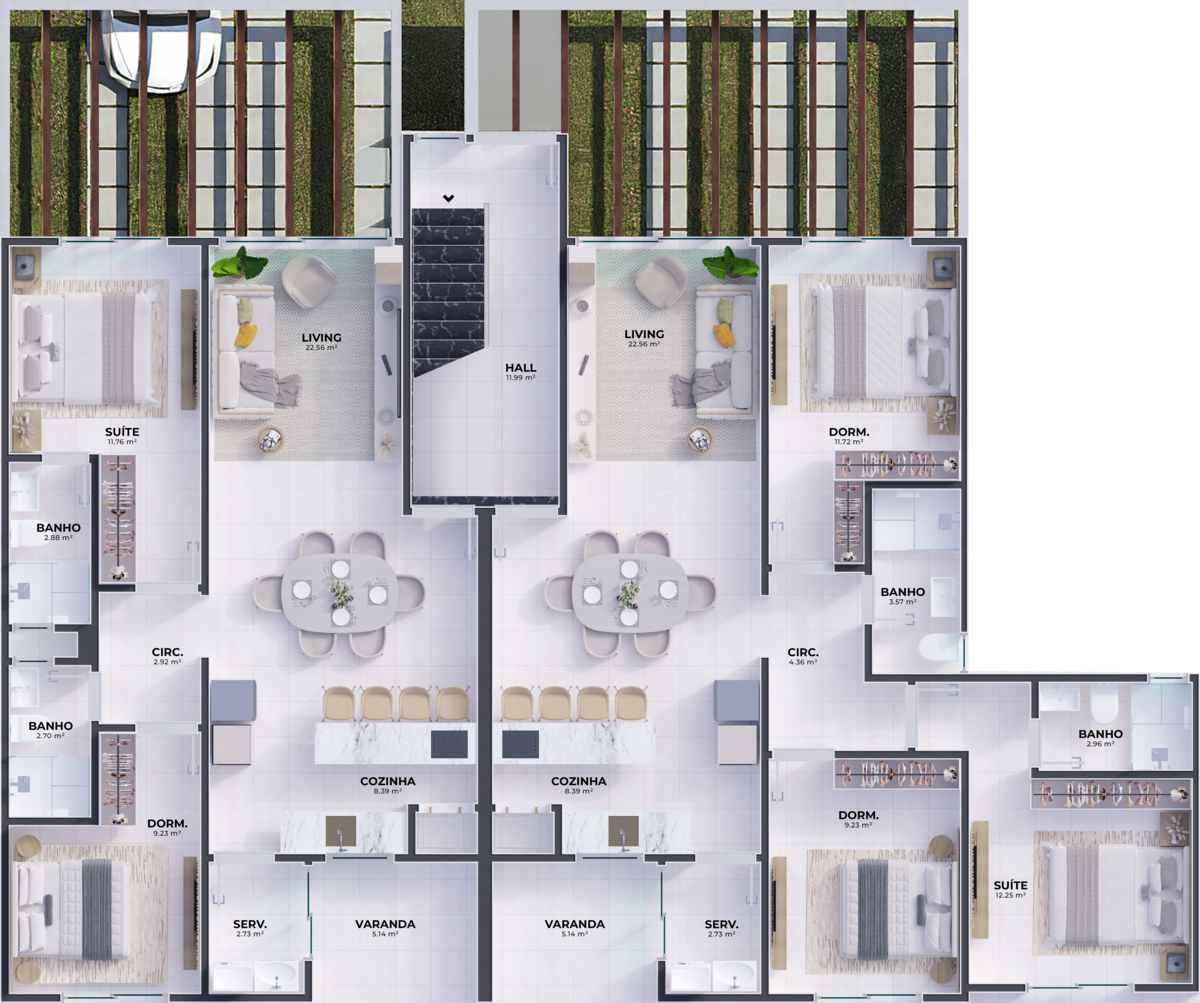 Além disso, as unidades são preparadas para o futuro, com ponto para carregamento de veículo elétrico com potência de 3 kWh, garantindo mais praticidade, valorização e sustentabilidade para o seu investimento.